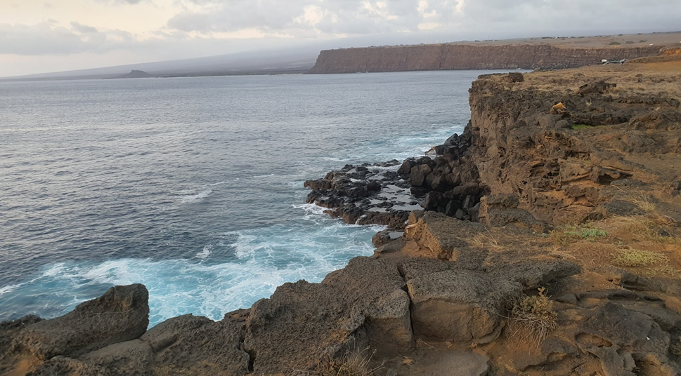 마지막으로 향한 곳은 black sand beach에서 얼마 떨어지지 않은 빅아일랜드 최남단 지점이었는데, 미국 50개 주 중에 가장 최 남단이라고 하는 곳이었다. 사실 지리적으로 괌이 더 남쪽이긴 하지만, 괌은 미국령이긴 해도 주 (State)가 아니기 때문에 state만 놓고 생각해본다면 최남단 지점이긴 한 것이다. 여기는 정말 도로가 울퉁불퉁한 오프로드 그자체고 길도 좁아서 운전하기가 수월하진 않았는데, 다행히 Jeep을 빌려놓은 덕에 무사히 다녀올 수 있었다. 우리 부부를 제외한 몇 대의 자동차가 드문 드문 보였으나, 많지는 않아서 마치 이 일대를 내가 빌려놓고 석양을 감상하는 것 같다는 느낌을 받았다. 와이키키에서 본 석양은 내일을 기대하게 만드는 시끌벅적한 석양의 느낌이었다면 여기 빅아일랜드 최남단에서 바라본 석양은 마치 노인이 되어서 추억을 회상하는 느낌의 석양이었다. 정말 아름다운 석양이었고, 그 밑에 치는 파도는 또 어찌나 사나운지 하루빨리 절벽을 깎아내겠다는 의지가 담긴것처럼 거칠었다. 와일드 그 자체인 지역이었다.