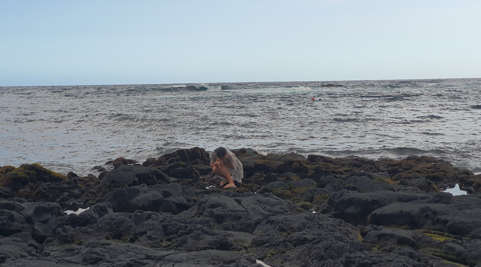 그 다음으로 우리가 향한 곳은 백사장이 아닌 흑사장으로 만들어진 곳, Black sand beach였다. 화산암지대다보니 이런 흑색의 돌들이 점차 조약돌이 되고 모래가 되면서 black sand beach 라는 이름이 붙은 것 같았다. 개인적인 느낌은 발 담그기에 좋다 정도였고, 아직 돌이나 모래가 거친 느낌이 있어서 수영하면서 놀기에는 좀 어렵지 않나 라는 생각을 했다. 물론 그 와중에도 수영하는 사람들이 있긴 했다. 운이 좋으면 바다거북이 쉬는 것도 볼 수 있다고 했는데 우리는 보지 못했다. 여담이지만 노점에서 로컬코코넛을 파는데 개당 10불을 달라고 해서 포기했다. 높은 하와이물가지만 우리동네 H마트에서 사면 3달러인데 개당 10달러를 주고 사려니 도저히 지갑이 열리지 않았기 때문이다..